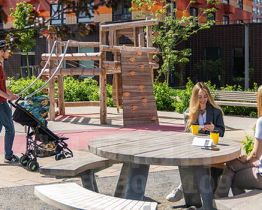 Детям любых возрастов понравится исследовать уникальное игровое пространство. Ребятам предстоит пройти полосу препятствий: проползти по тоннелю в полусфере, затем взобраться на стальной купол, а после этого — вскарабкаться по канатной сетке длиной в 15 метров, ведущей прямиком к зиплайну.