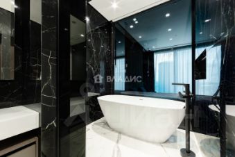 В отделке использованы премиальные материалы: Дорогая немецкая техника BOSCH (Встраиваемые кофемашина, микроволновая печь, духовной шкаф, винный шкаф), стиральная сушильная машина, премиум инженерная доска, итальянские диваны и кровать, система умный дом на базе Алисы, панорамный вид из ванной комнаты. В интерьере много деталей современного декора. Функциональная планировка: гостиная, совмещенная с кухней, спальня, гостевой санузел, гардеробная, совмещенный санузел с ванной и тропическим душем. Апартаменты полностью укомплектованы и готовы к заселению.
