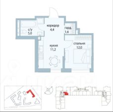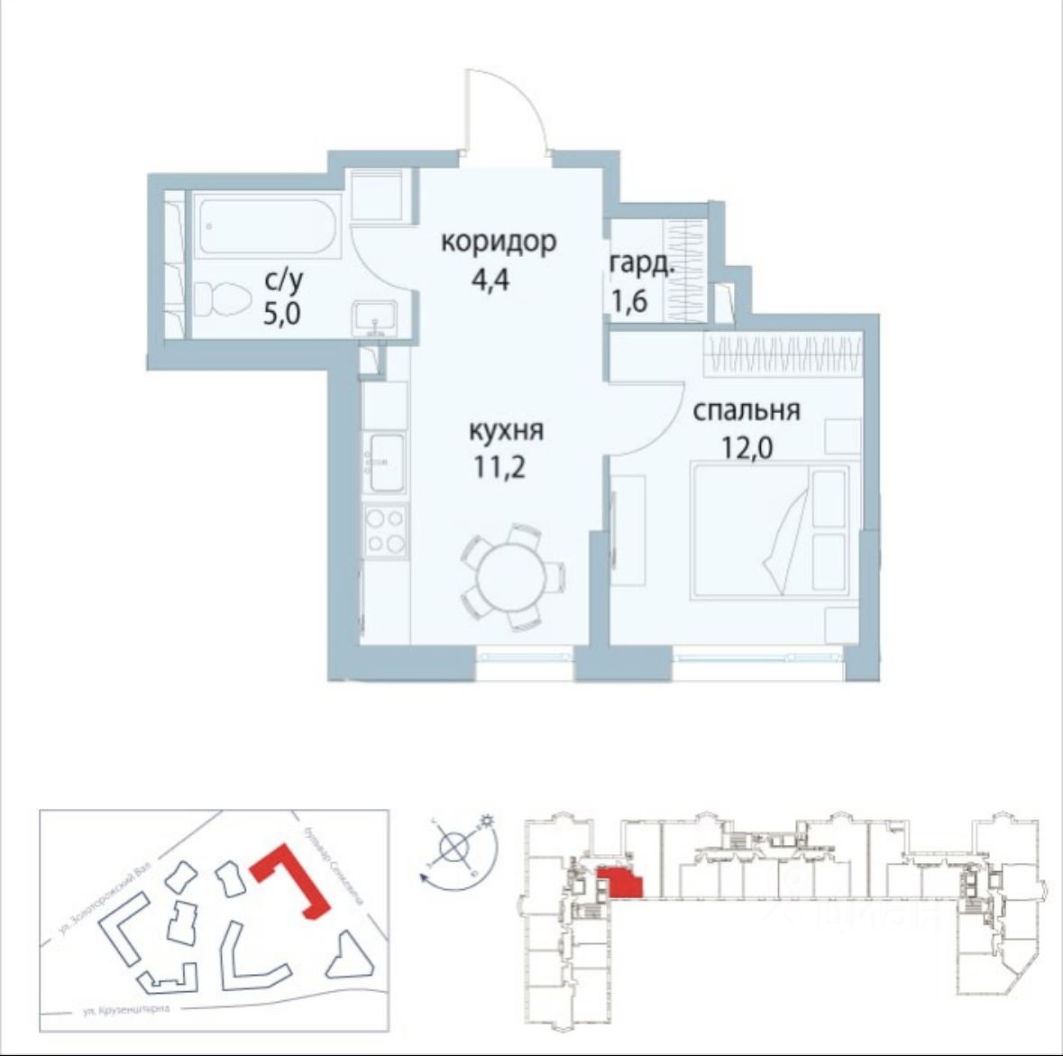 Общая площадь 34.2м², жилой квартал "Вдохновение", корпус 31.