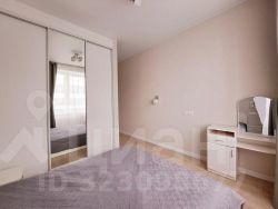 Квартира в формате евротрешки в ЖК "Символ". Две изолированные комнаты и гостиная-столовая с кухней, просторная лоджия около 5 м.кв. В одной комнате спальня с вместительным встроенным шкафом-купе, другая комната свободного назначения (сейчас детская). Большая комната-гостиная с выделенной зоной кухни. Кухня оборудована встроенной мебелью и техникой (посудомоечная машинка, 2-камерный холодильник, СВЧ, варочная панель, духовой шкаф, вытяжка); в гостиной зоне обеденный стол со стульями, диван, телевизор на комоде. Квартира полностью меблирована - мебель можем оставить. Два санузла: один совмещенный с ванной; другой - гостевой. В гостевом санузле установлена стиральная машинка. Большая квадратная прихожая со встроенным шкафом-купе для верхней одежды, сумок и обуви. Все окна в сторону внутреннего двора.