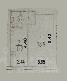 Общая площадь квартиры 34,5 кв.м, комната просторная 18,9 кв.м, большая кухня 10,2 кв.м, с/узел совмещенный. БЕЗ БАЛКОНА.