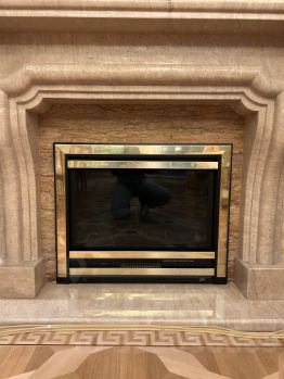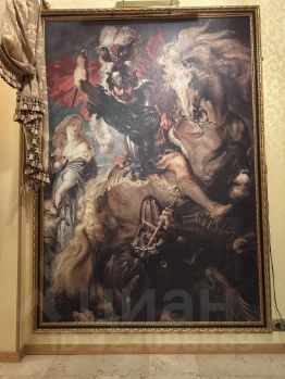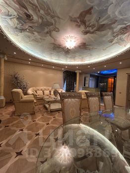 Просторная гостиная- 40кв м. Дубовый паркет(премиум) с художественным рисунком, английский камин из травертина, лепнина на потолке и колонах, картины и роспись на потолке от известной мастерской Хагери. Мебель - Англия, витражи с предметами искусства, большой стол с изящными стульями.