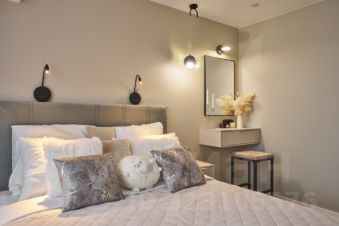 Спальня. Гардеробная. Туалетный стол с зеркалом и подсветкой. Кровать с подъемным механизмом и ортопедическим матрасом.