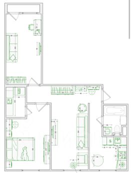В спальне организована гардеробная, вторая комната свободного назначения (детская, кабинет, гостевая).