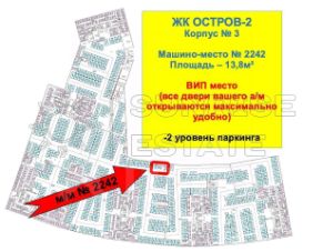 Квартал ОСТРОВ 2 располагает двухуровневым подземным паркингом на 981 машиноместо с возможностью установки зарядных устройств для электромобилей и кладовыми помещениями.