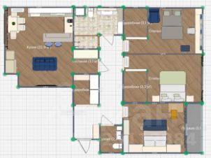 3 изолированные комнаты (16,8/16,1/13), кухня-гостиная (23 кв.м),