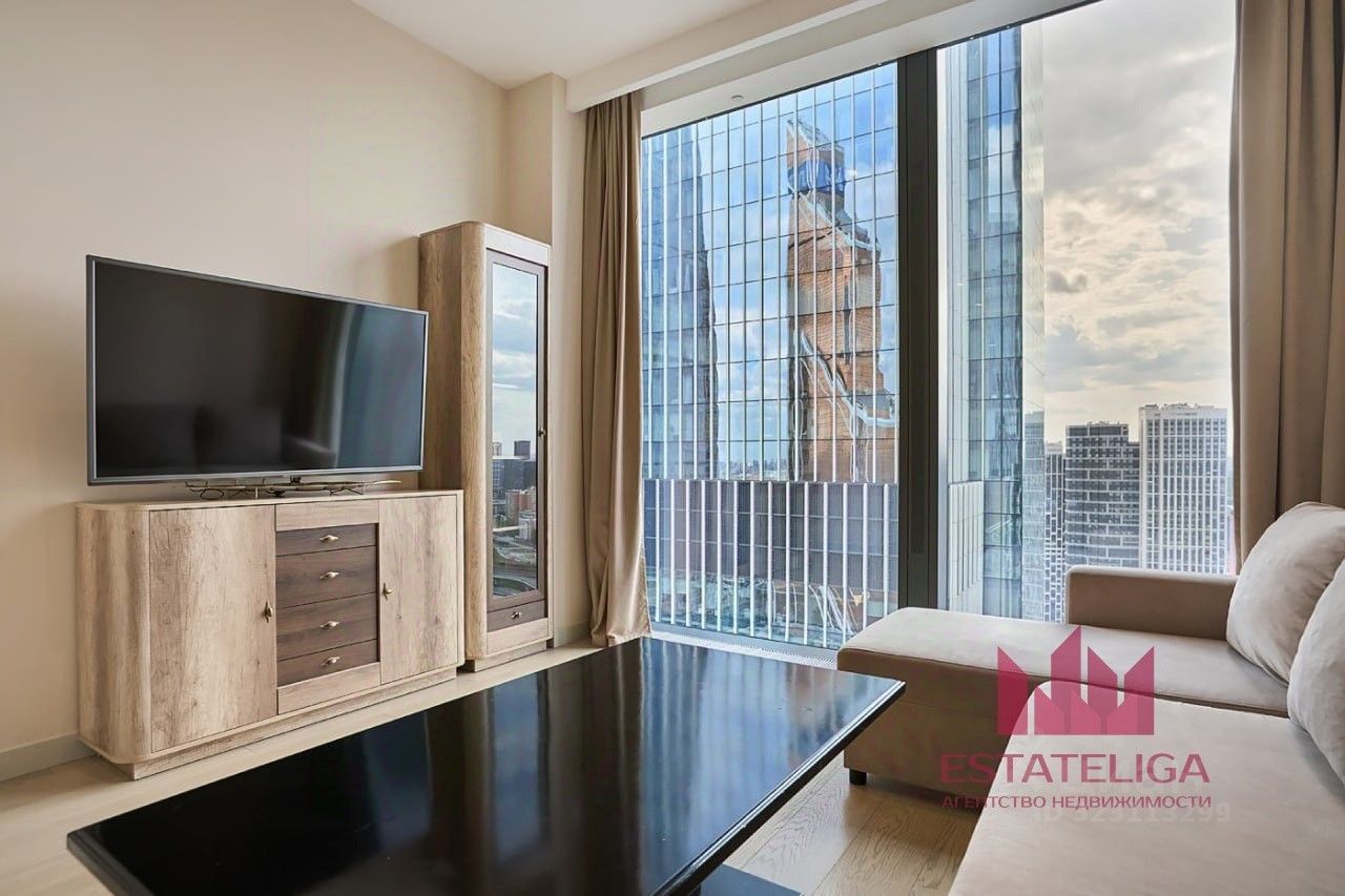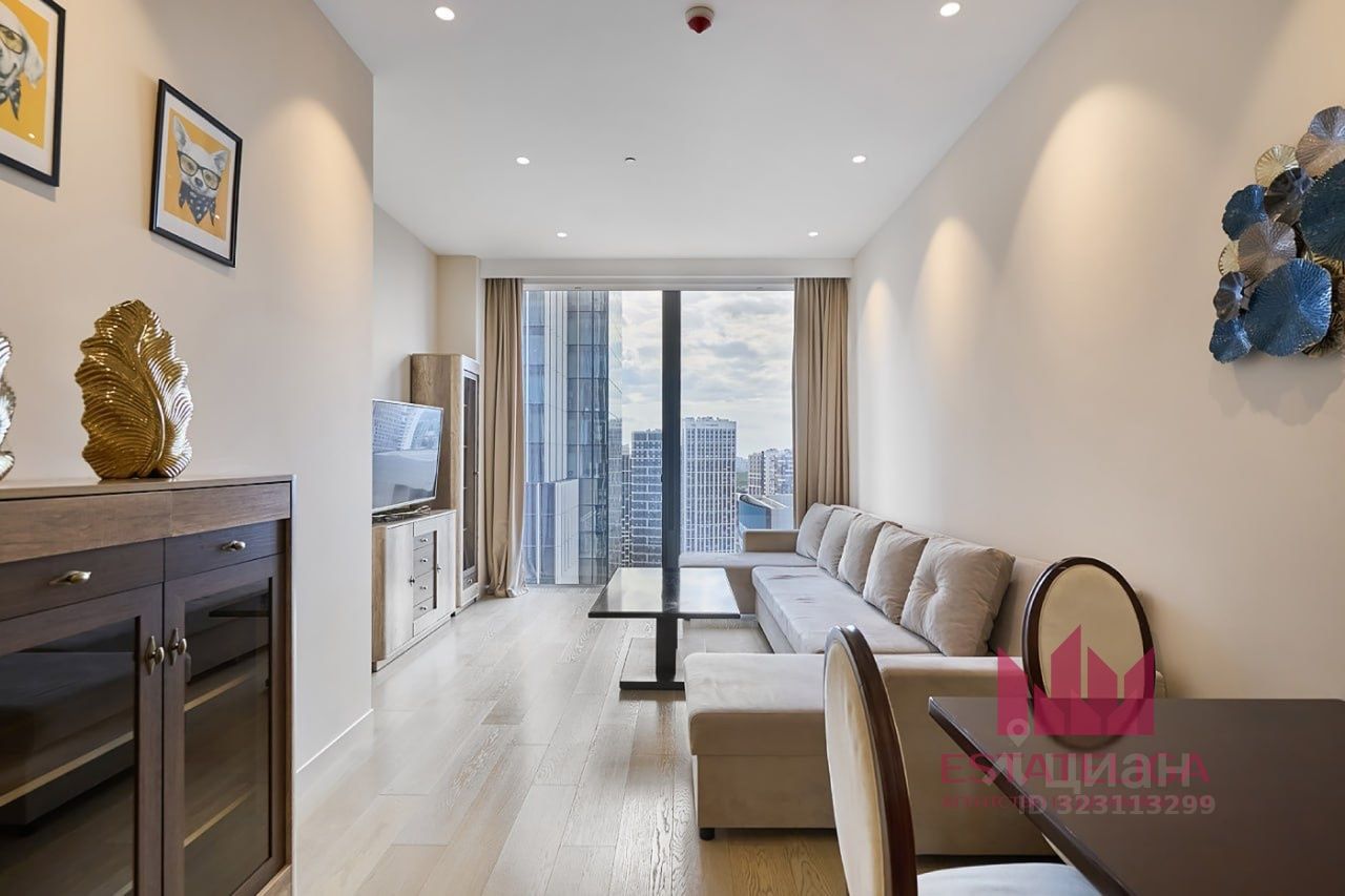 Панорамные окна квартиры - впечатляющий вид на городской пейзаж. Находясь на высоте птичьего полёта, вы сможете ежедневно наслаждаться захватывающими дух панорамами столицы.