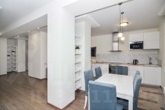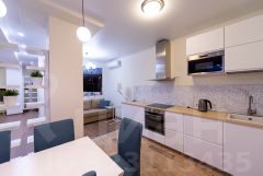 Развитая собственная инфраструктура включает: 2-х уровневый подземный паркинг на 1200 м/мест, детский сад, фитнес-центр с бассейном, уютное кафе, итальянский ресторан, салон красоты и другие предприятия социально-бытовой сферы.
