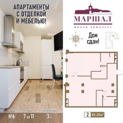 Продаются 2-комнатные апартаменты в сданном доме (Маршала Рыбалко, 2К6), срок сдачи: IV-кв. 2011, общей площадью 85.35 кв.м., на 7 этаже. С чистовой отделкой и мебелью.