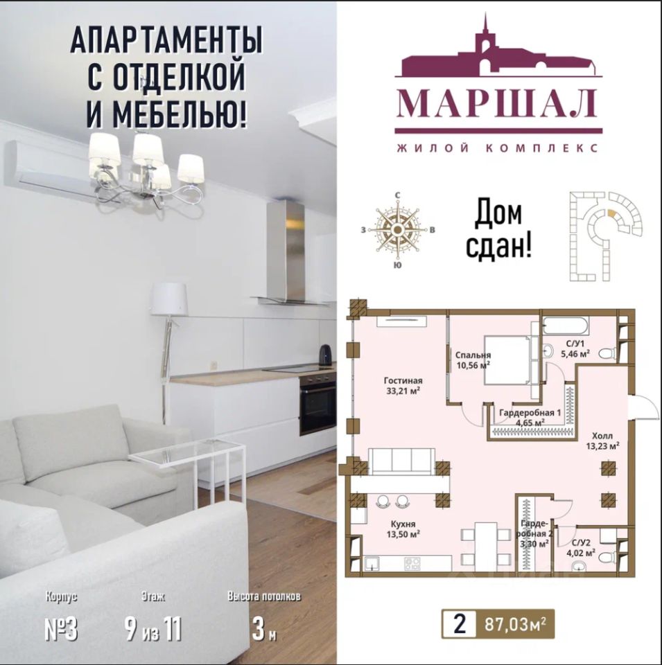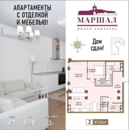 Продаются 2-комнатные апартаменты в сданном доме (Маршала Рыбалко, 2К6), срок сдачи: IV-кв. 2011, общей площадью 87.03 кв.м., на 9 этаже. С чистовой отделкой и мебелью.