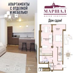 Продаются 2-комнатные апартаменты в сданном доме (Маршала Рыбалко, 2К9), срок сдачи: IV-кв. 2011, общей площадью 67.46 кв.м., на 5 этаже. С чистовой отделкой и мебелью.