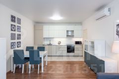 Развитая собственная инфраструктура включает: 2-х уровневый подземный паркинг на 1200 м/мест, детский сад, фитнес-центр с бассейном, уютное кафе, итальянский ресторан, салон красоты и другие предприятия социально-бытовой сферы.