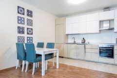 Развитая собственная инфраструктура включает: 2-х уровневый подземный паркинг на 1200 м/мест, детский сад, фитнес-центр с бассейном, уютное кафе, итальянский ресторан, салон красоты и другие предприятия социально-бытовой сферы.