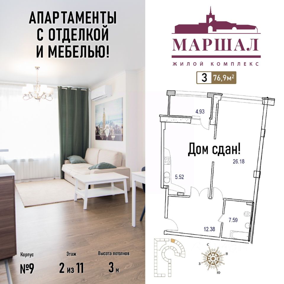 Разный формат недвижимости в составе МФК "Маршал" и развитая инфраструктура воплощают концепцию Live & Work ("Живи и работай"). В комплекс, помимо жилых помещений, входит деловой центр "Маршал" класса В +, где можно купить или взять в аренду офисное помещение. Таким образом, купив апартаменты в МФК "Маршал", вам не придется уезжать далеко, чтобы поработать в офисе.