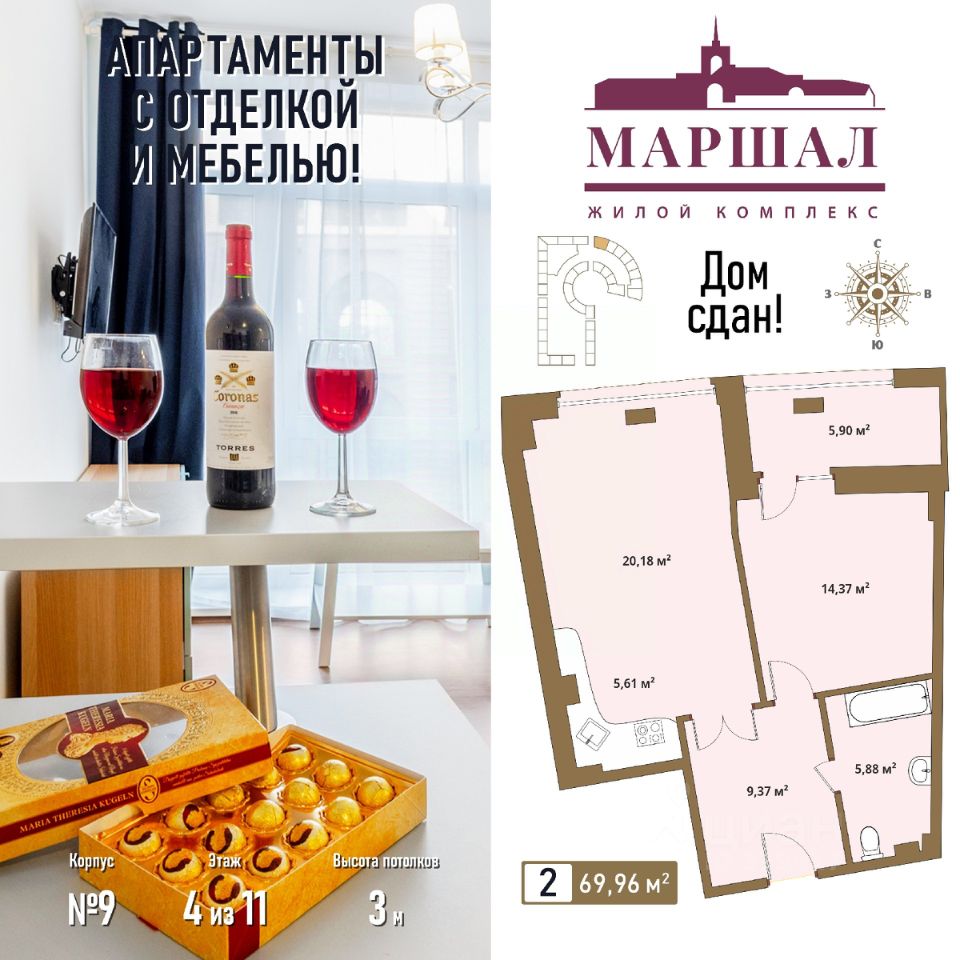 Разный формат недвижимости в составе МФК "Маршал" и развитая инфраструктура воплощают концепцию Live & Work ("Живи и работай"). В комплекс, помимо жилых помещений, входит деловой центр "Маршал" класса В +, где можно купить или взять в аренду офисное помещение. Таким образом, купив апартаменты в МФК "Маршал", вам не придется уезжать далеко, чтобы поработать в офисе.