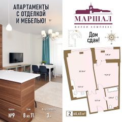 Продаются 2-комнатные апартаменты в сданном доме (Маршала Рыбалко, 2К9), срок сдачи: IV-кв. 2011, общей площадью 60.45 кв.м., на 8 этаже. С чистовой отделкой и мебелью.