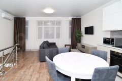 Развитая собственная инфраструктура включает: 2-х уровневый подземный паркинг на 1200 м/мест, детский сад, фитнес-центр с бассейном, уютное кафе, итальянский ресторан, салон красоты и другие предприятия социально-бытовой сферы.