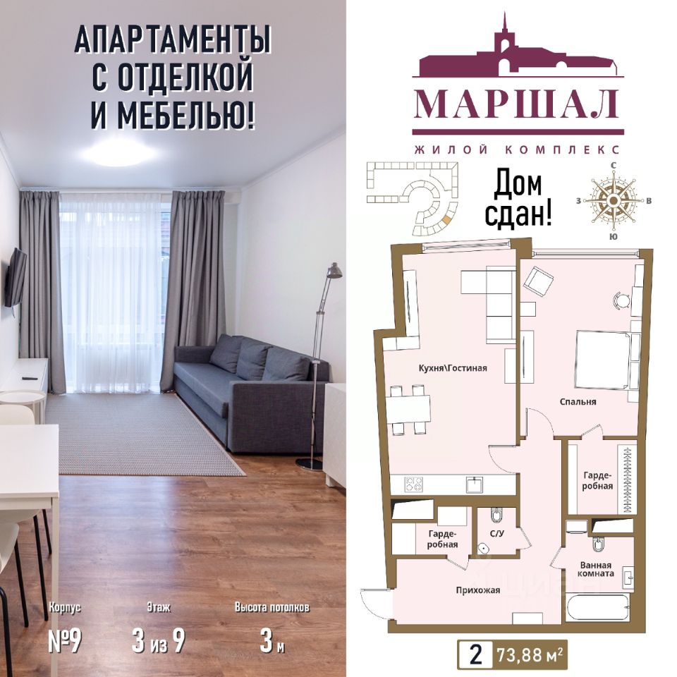 Продаются 2-комнатные апартаменты в сданном доме (Маршала Рыбалко, 2К9), срок сдачи: IV-кв. 2011, общей площадью 73.88 кв.м., на 3 этаже. С чистовой отделкой и мебелью.