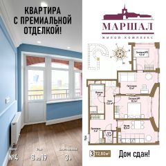 Продаётся 3-комнатная квартира в сданном доме (Маршала Рыбалко, 2К4), срок сдачи: IV-кв. 2011, общей площадью 75.39 кв.м., на 8 этаже. Готовая квартира в элитном МФК "Маршал" с премиальной отделкой "под ключ" (экологичное напольное покрытие - инженерная доска Greenline и керамогранит, высококачественные системы кондиционирования и сантехническое оборудование), выполненной европейскими специалистами по эксклюзивным дизайн-проектам, подчеркнет высокий статус владельца.