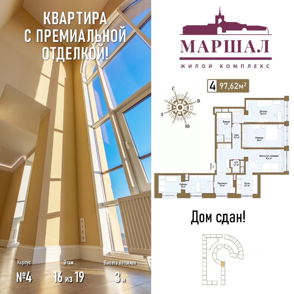 Продаётся 4-комнатная квартира в сданном доме (Маршала Рыбалко, 2К4), срок сдачи: IV-кв. 2011, общей площадью 97.62 кв.м., на 17 этаже. Готовая квартира в элитном МФК "Маршал" с премиальной отделкой "под ключ" (экологичное напольное покрытие - инженерная доска Greenline и керамогранит, высококачественные системы кондиционирования и сантехническое оборудование), выполненной европейскими специалистами по эксклюзивным дизайн-проектам, подчеркнет высокий статус владельца.