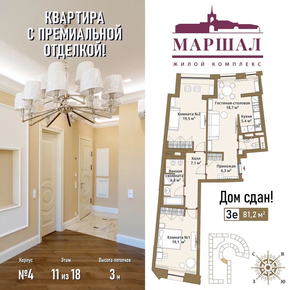 Продаётся 3-комнатная квартира в сданном доме (Маршала Рыбалко, 2К4), срок сдачи: IV-кв. 2011, общей площадью 79.38 кв.м., на 11 этаже. Готовая квартира в элитном МФК "Маршал" с премиальной отделкой "под ключ" (экологичное напольное покрытие - инженерная доска Greenline и керамогранит, высококачественные системы кондиционирования и сантехническое оборудование), выполненной европейскими специалистами по эксклюзивным дизайн-проектам, подчеркнет высокий статус владельца.