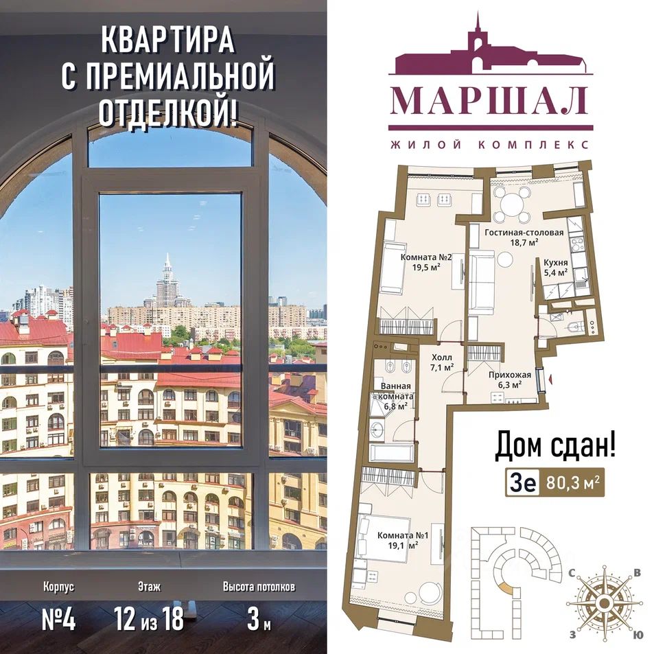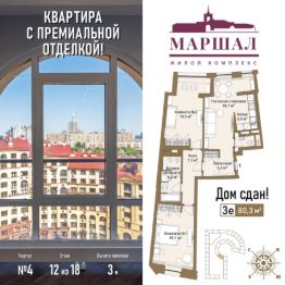 Продаётся 3-комнатная квартира в сданном доме (Маршала Рыбалко, 2К4), срок сдачи: IV-кв. 2011, общей площадью 79.18 кв.м., на 12 этаже. Готовая квартира в элитном МФК "Маршал" с премиальной отделкой "под ключ" (экологичное напольное покрытие - инженерная доска Greenline и керамогранит, высококачественные системы кондиционирования и сантехническое оборудование), выполненной европейскими специалистами по эксклюзивным дизайн-проектам, подчеркнет высокий статус владельца.