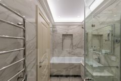 Роскошные интерьеры лобби: натуральный испанский мрамор, оникс, итальянская люстра ручной работы, кованая мебель. Лифты премиум-класса ThyssenKrupp. Консьерж-служба. Видеонаблюдение. Элегантные межквартирные холлы. Двери квартир со вставками из массива дуба выполнены в едином стиле. На этажах мусорокамеры закрытого типа.