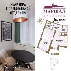 Продаётся 2-комнатная квартира в сданном доме (Маршала Рыбалко, 2К4), срок сдачи: IV-кв. 2011, общей площадью 48.9 кв.м., на 3 этаже. Готовая квартира в элитном МФК "Маршал" с премиальной отделкой "под ключ" (экологичное напольное покрытие - инженерная доска Greenline и керамогранит, высококачественные системы кондиционирования и сантехническое оборудование), выполненной европейскими специалистами по эксклюзивным дизайн-проектам, подчеркнет высокий статус владельца.