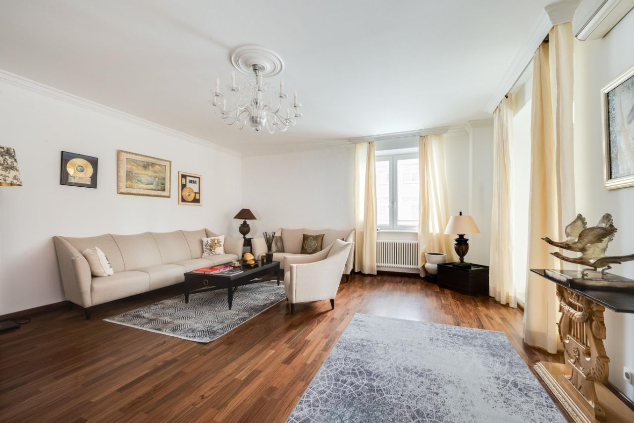 Жильё поражает своей продуманностью и изысканностью дизайнерского ремонта, который подчеркивает благородство и стиль интерьера. Функциональная планировка обеспечивает максимальный комфорт жителей - в квартире есть просторная общественная зона для встреч и приема гостей, приватная мастер-спальня с собственной гардеробной, санузлом и уютным овальным балконом с кофейным столиком.
