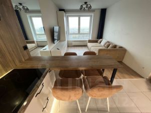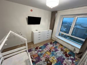 Евро-трешка с отличным видом. Квартира в отличном состоянии, очень светлая. По функционалу это 3-х комнатная квартира. Дорогая кухня и техника, мебель приобреталась только качественная. В квартире оборудовали кладовку для хранения вещей.