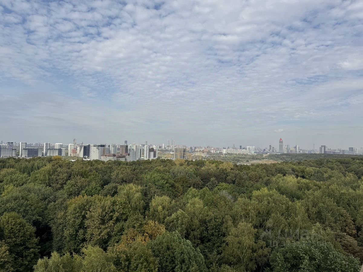 Квартира расположена на 12 этаже 22-этажного дома, с панорамными окнами и впечатляющими видами на парк и Москву.