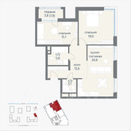 Функциональная планировка: кухня-гостиная, 2 спальни, 2 с/у и уютная лоджия.