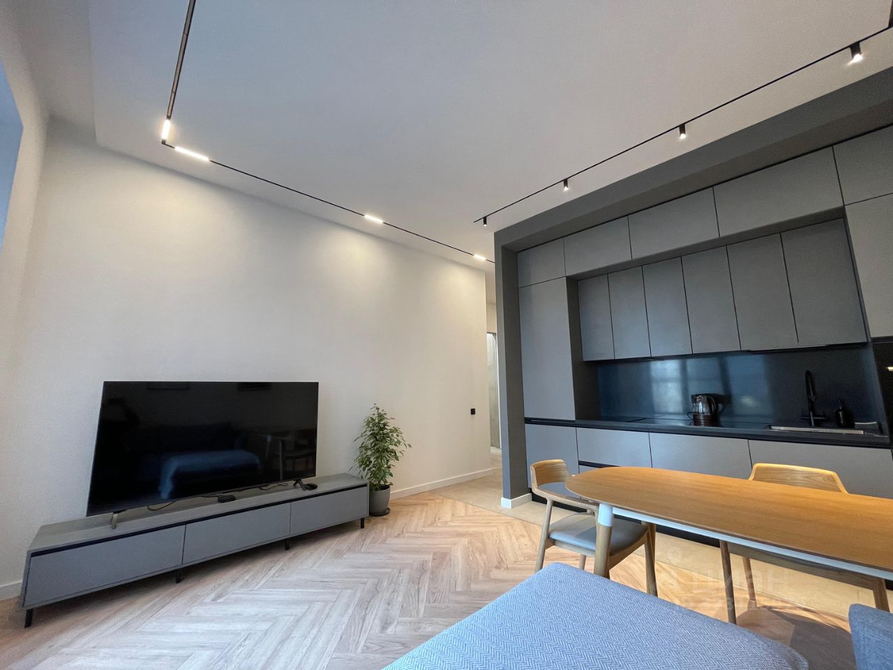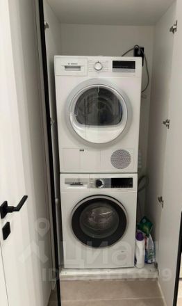 Квартира полностью меблирована и оборудована бытовой техникой: встроенный кухонный гарнитур с посудомоечной машиной, плитой, духовым шкафом, микроволновкой и холодильником, обеденный стол, угловой диван, телевизор, двуспальная кровать, платяные шкафы, комод, мебель в ванной, стиральная и сушильная машины.