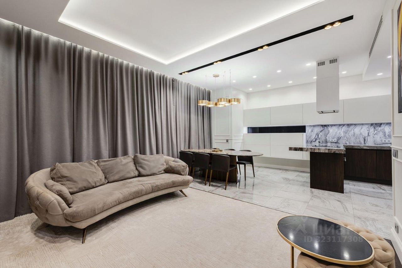 Продаётся 2к квартира с новой дизайнерской отделкой в жилом комплексе премиум-класса Red Side на Красной Пресне (2-я Черногрязская ул., д. 6, корп. 4). Просторная планировка 85,57 м² — большая кухня-гостиная и изолированная спальня.