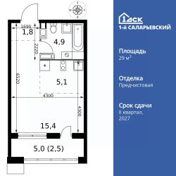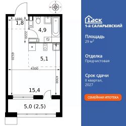 Продаётся квартира-студия номер 124 общей площадью 29.7 кв.м. на 13-м этаже 25 этажного здания. Отделка Whitebox. Цена с учётом скидки.
