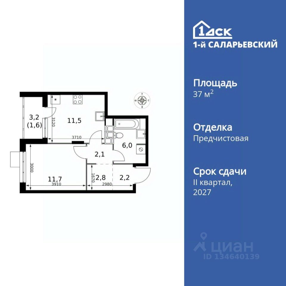 Продаётся 1-к квартира номер 181 общей площадью 37.9 кв.м. на 18-м этаже 25 этажного здания. Отделка Whitebox. Цена с учётом скидки.