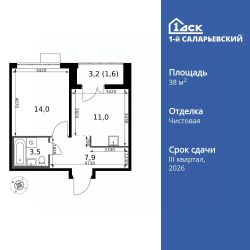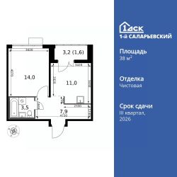 Продаётся 1-к квартира номер 715 общей площадью 38 кв.м. на 24-м этаже 24 этажного здания. Чистовая отделка. Цена с учётом скидки.