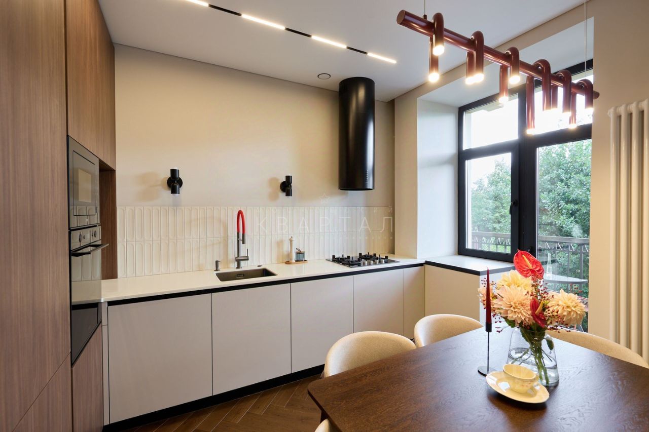 Ремонт и оснащение: выполнен качественный дизайнерский ремонт; заменены все инженерные системы и коммуникации; пол — инженерная доска, уложенная французской "ёлочкой"; стены под покраску; высокие двери скрытого монтажа; техника премиум-брендов: Asko, Franke, Liebherr, Omoikiri.