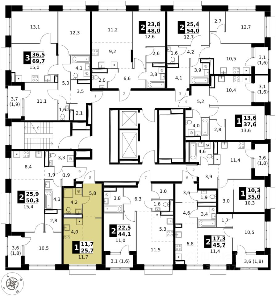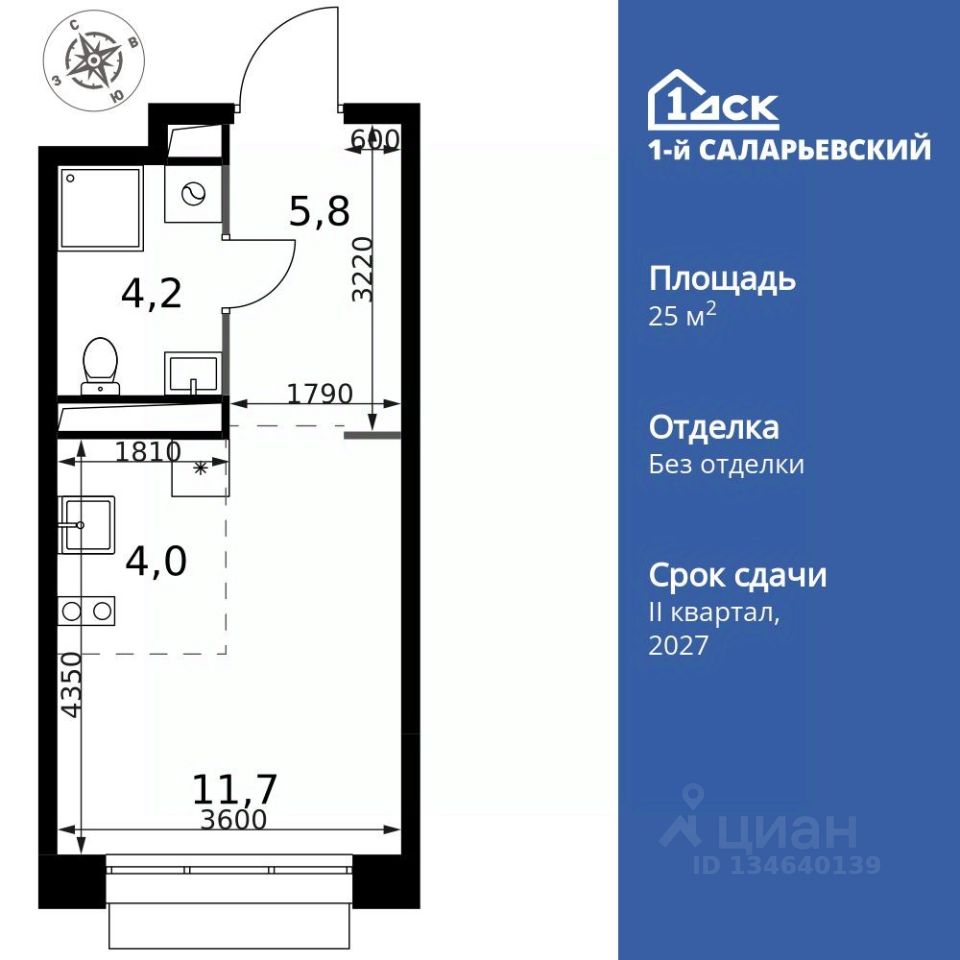 Продаётся квартира-студия номер 431 общей площадью 25.7 кв.м. на 3-м этаже 21 этажного здания. Без отделки. Цена с учётом скидки.