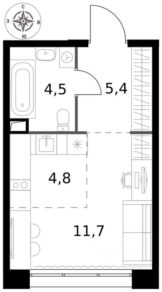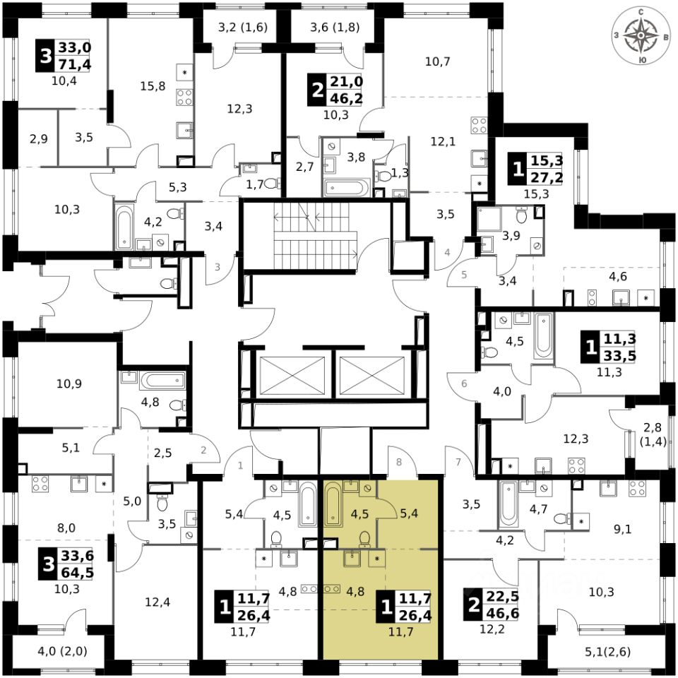 Продаётся квартира-студия номер 602 общей площадью 26.4 кв.м. на 2-м этаже 25 этажного здания. Без отделки. Цена с учётом скидки.