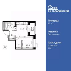Продаётся 1-к квартира номер 563 общей площадью 35 кв.м. на 18-м этаже 21 этажного здания. Без отделки. Цена с учётом скидки.