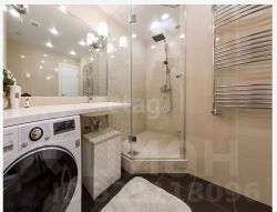 В ванной комнате поместились и угловая ванна и душевая кабина.