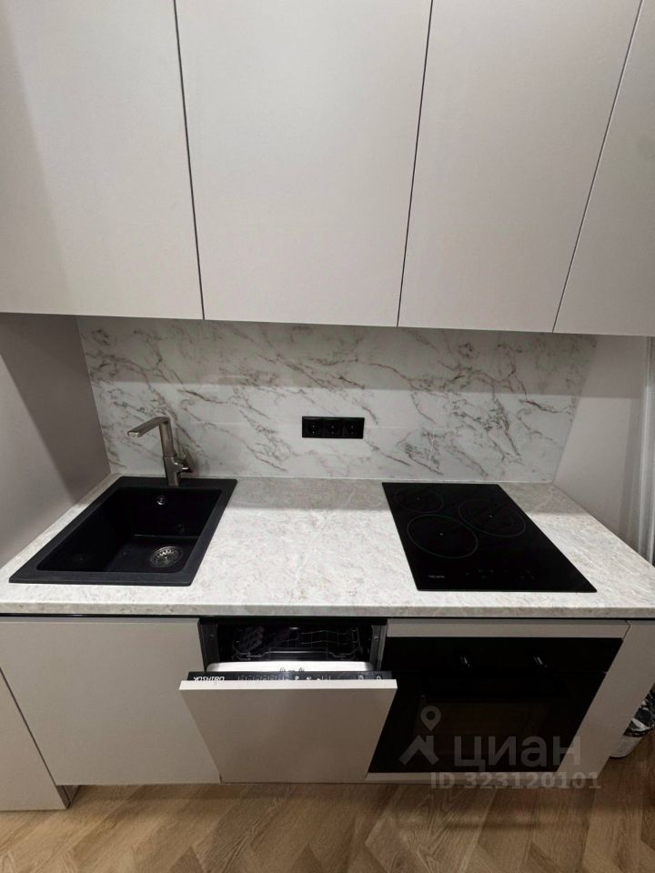 Кухня-гостиная оборудована встроенной техникой: посудомоечная машина, варочная панель, духовой шкаф, СВЧ.