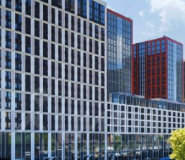 На территории — подземный паркинг, детская и спортивная площадки, благоустроенные зоны отдыха.