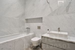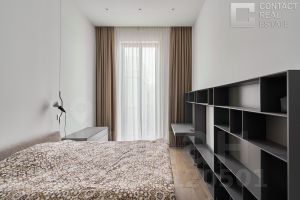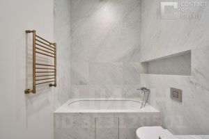 В квартире выполнена дизайнерская отделка в стиле современной классики от итальянской студии Molteni Group. Кухня — от итальянского бренда Dada с использованием натурального камня. Полностью оборудованы ванные комнаты — бренды Villeroy & Boch, Kaldewei, Gessi.