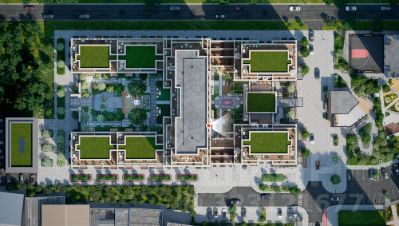 На эксплуатируемых кровлях запроектированы зелёные пространства. В инфраструктуру проекта войдут два павильона с кафетерием и детским клубом, фитнес-студия, ресторан и винотека.