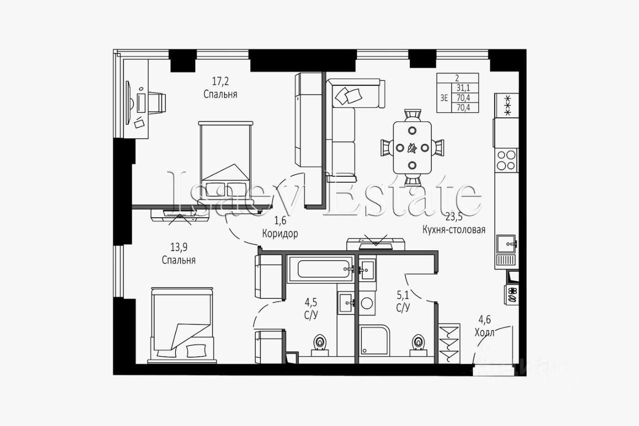 Из окон открываются отличные панорамные виды. Квартира солнечная и очень светлая.