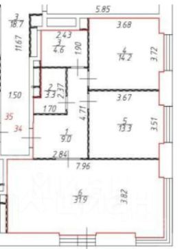 Предлагается трехкомнатная квартира. Высота потолков 3 метра.