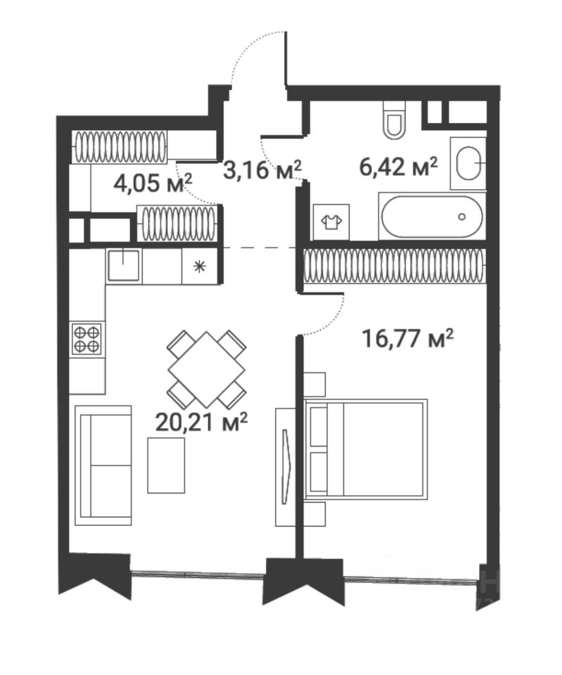 Продаётся двухкомнатная квартира евро формата с большой кухней, гардеробной, панорамными окнами и отделкой whitebox: