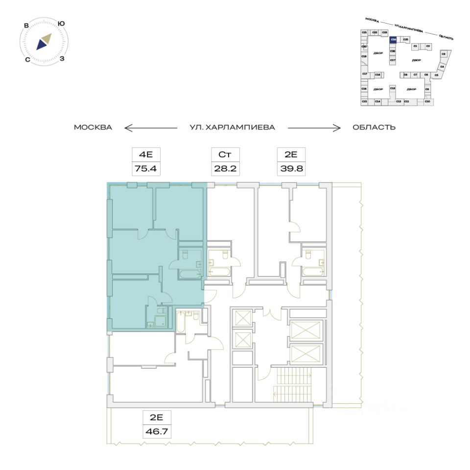 ЖК "Детали" | 4-комнатная квартира, 75.40 м², 20-й этаж.